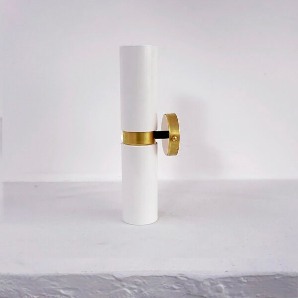 El aplique de 2 luces de la colección Elegance mantiene la estética depurada del modelo individual, pero duplica su potencia decorativa. Su estructura cilíndrica en metal blanco con detalles en latón y brazo en negro mate aporta carácter sin sobrecargar el espacio. Los dos puntos de luz proyectan la iluminación hacia arriba y hacia abajo, generando una atmósfera cálida y escultural. Las tulipas se desenroscan fácilmente para sustituir la bombilla, lo que facilita el mantenimiento sin herramientas. Ideal para zonas de paso, escaleras o paredes que necesitan un punto decorativo con presencia.