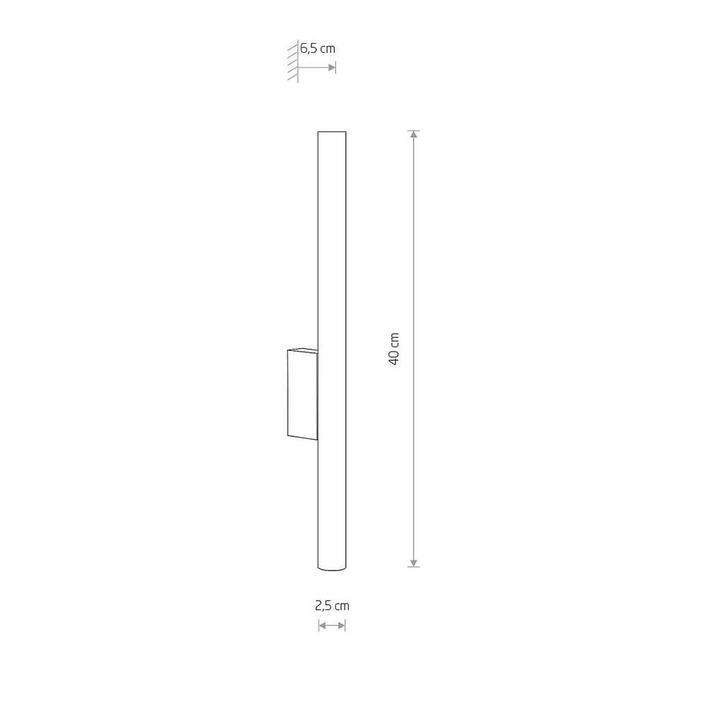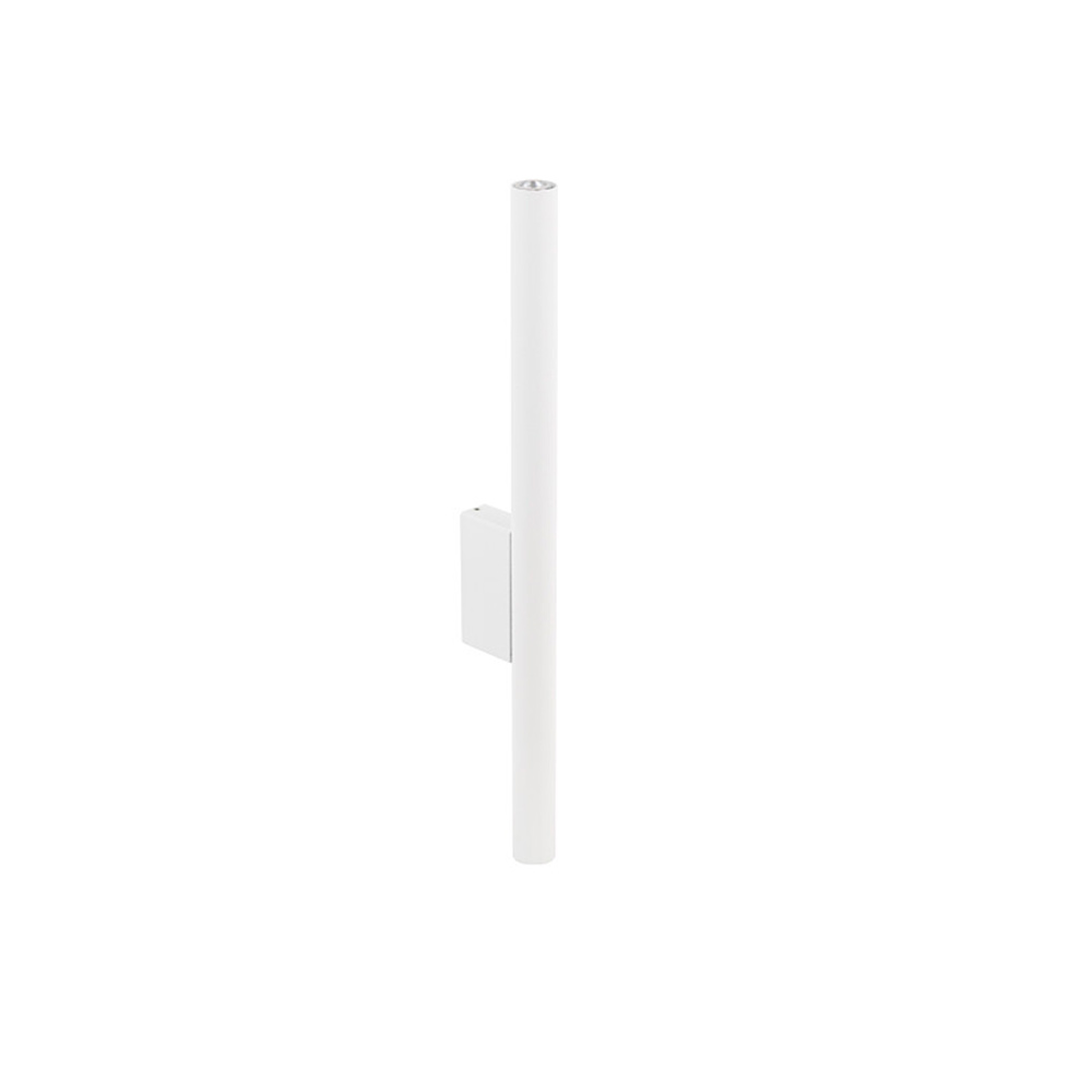 Aplique de pared blanco con forma cilíndrica alargada, perfecto para crear efectos de luz ambiental tanto ascendente como descendente. Ideal para pasillos, entradas o junto al cabecero.