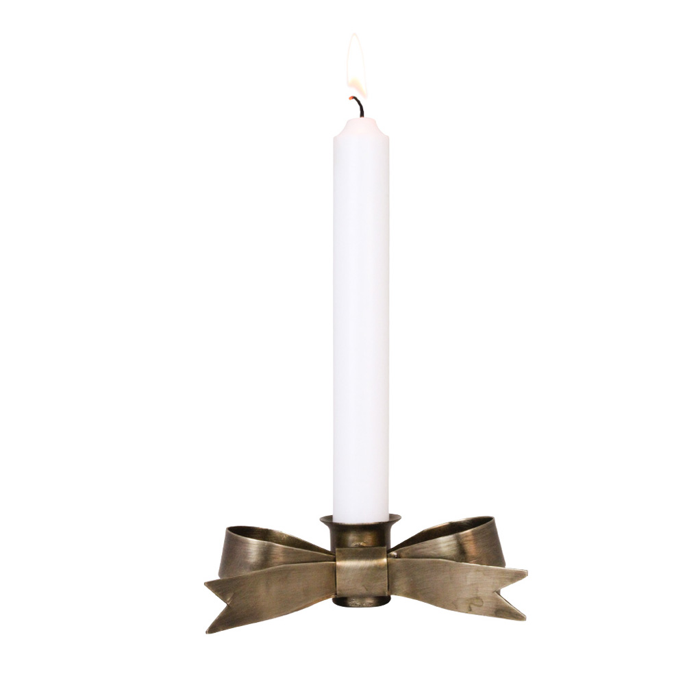 Este portavelas es pura delicadeza en forma de objeto decorativo. Fabricado en hierro con un acabado en latón envejecido, su diseño en forma de lazo lo convierte en una pieza especial que destaca en cualquier rincón. Más que un simple accesorio funcional, es un pequeño detalle lleno de encanto que aporta calidez, elegancia y ese toque vintage que tanto nos gusta. Perfecto para vestir la mesa, iluminar una repisa o acompañar tus momentos más especiales.