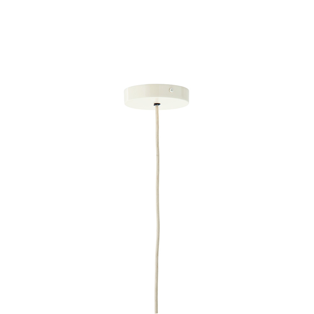 Lámpara colgante de metal en tono marfil con un diseño minimalista y elegante. Su estructura de hierro aporta un aire contemporáneo, mientras que su acabado en color marfil suaviza su presencia, permitiendo que se adapte a diferentes estilos decorativos. Perfecta para iluminar mesas de comedor, barras de cocina o rincones acogedores.
