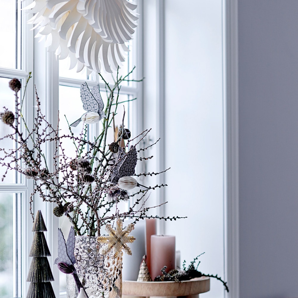 Aunque puedes ponerla en la pared o colgando ligera sobre la mesa del comedor, este tipo de estrellas de papel nos parecen una maravilla puestas en la ventana. Están elaboradas a mano en papel troquelado y tienen un pequeño cordón para que puedas engancharla y colgarla fácilmente. ¿Pueden ser más navideñas?