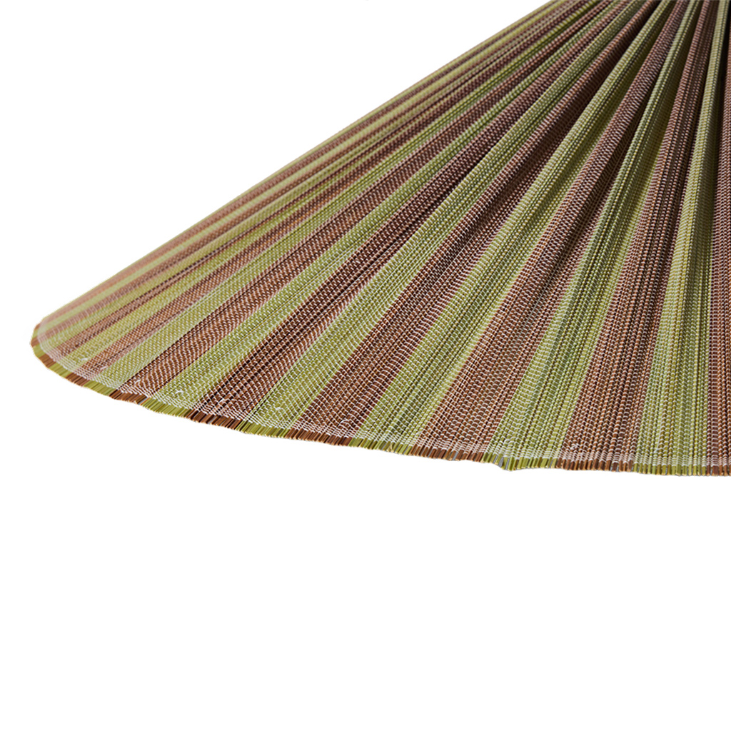 La lámpara colgante Verdura es una pieza con fuerte personalidad. Su gran pantalla plisada, elaborada en bambú, combina franjas verdes y marrones que aportan ritmo, textura y un aire natural muy especial.