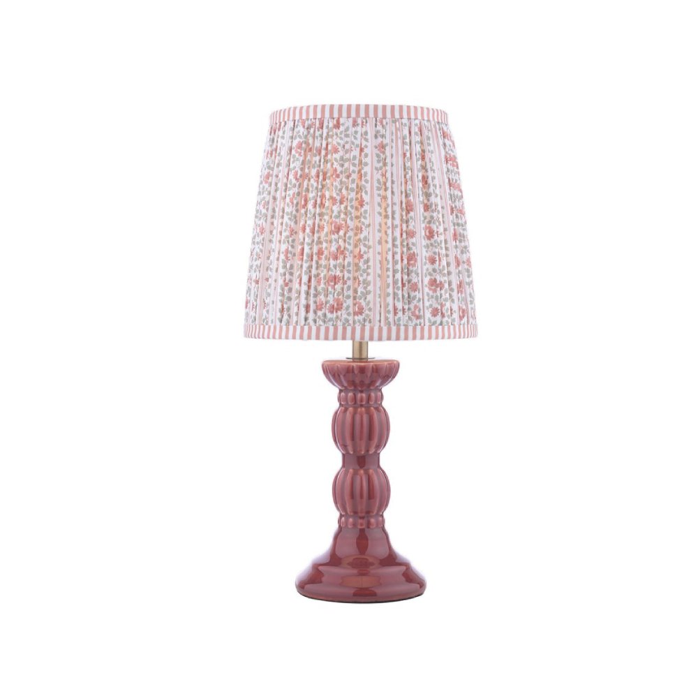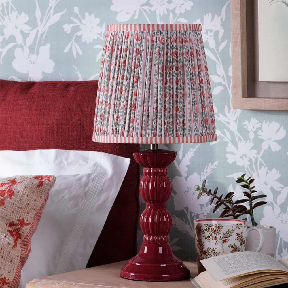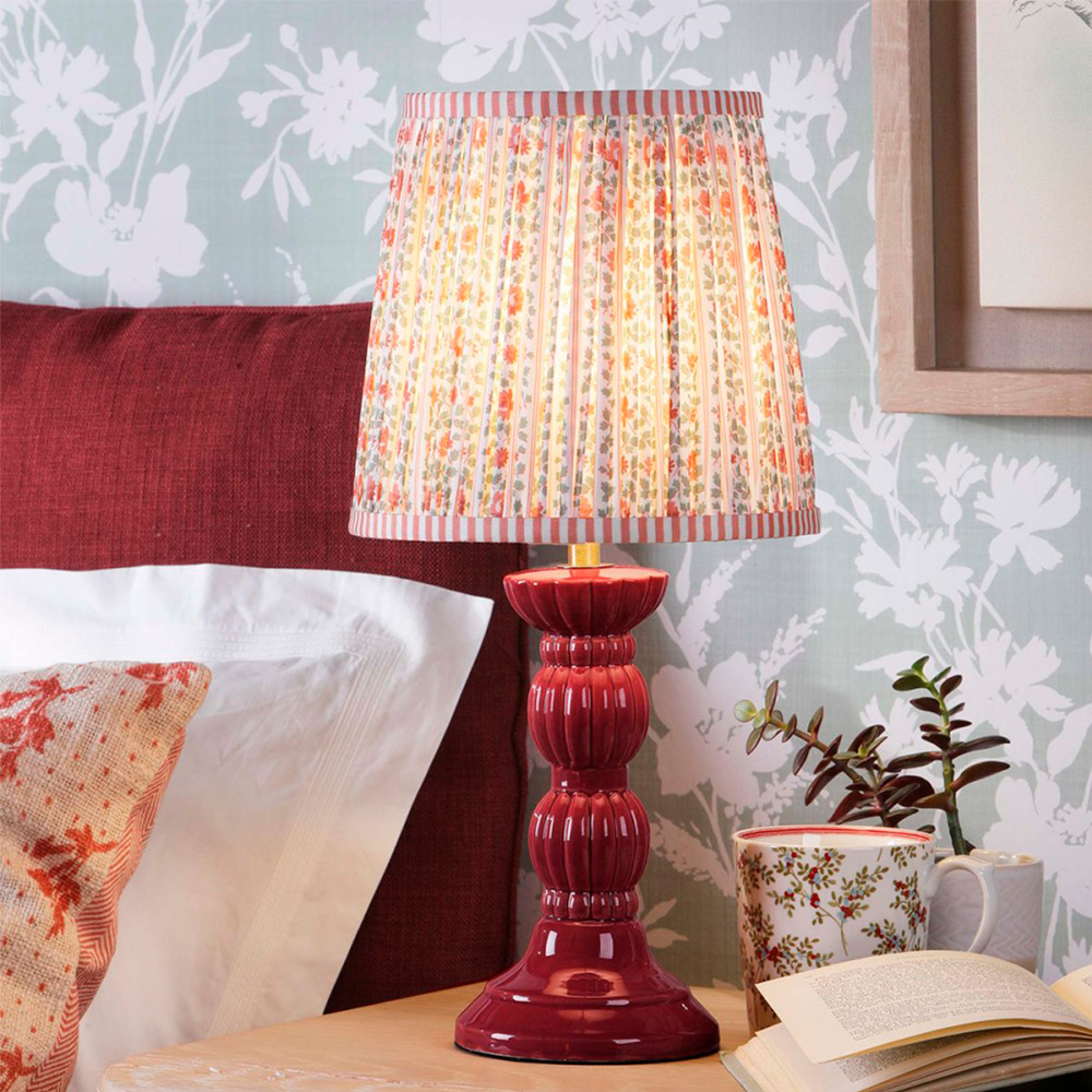 La lámpara de mesa Kelbrook combina una base de cerámica roja con una pantalla floral plisada. Una pieza luminosa y alegre que aporta encanto inglés a cualquier rincón.
