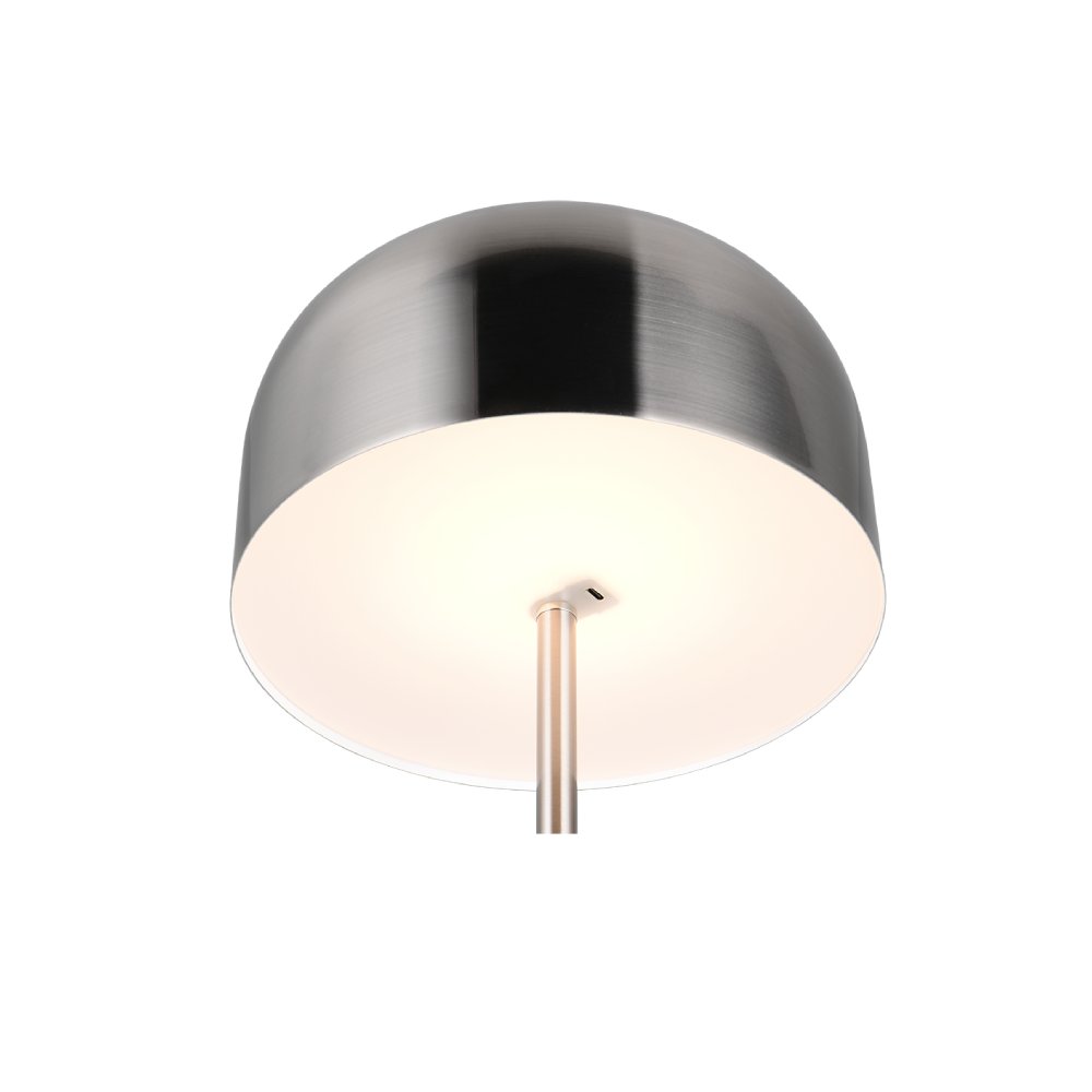Pie de salón de estética moderna con acabado níquel mate, perfecto para espacios contemporáneos que buscan una iluminación limpia y funcional. Su pantalla metálica aporta una luz cálida e indirecta muy agradable. Funciona con batería recargable mediante USB y permite regular la intensidad a través de su sistema táctil de 4 niveles. Un diseño pensado para acompañar la vida diaria sin cables ni complicaciones.