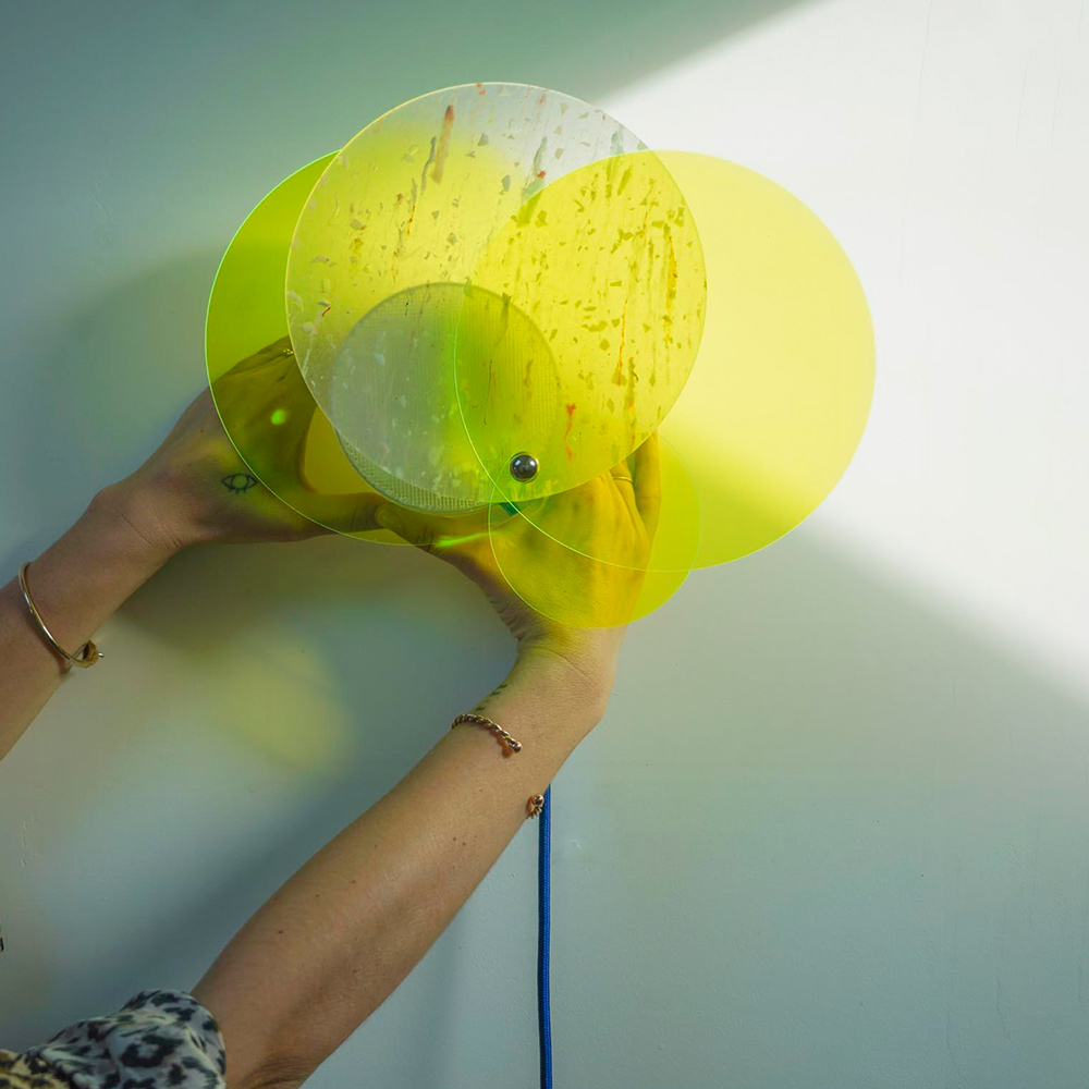 La lámpara Halo Amarilla de Rayon Vert Studio es una oda a la creatividad y la libertad. Diseñada y fabricada en Francia a partir de plásticos reciclados (R-PETG y acrílico), combina innovación, color y sostenibilidad.