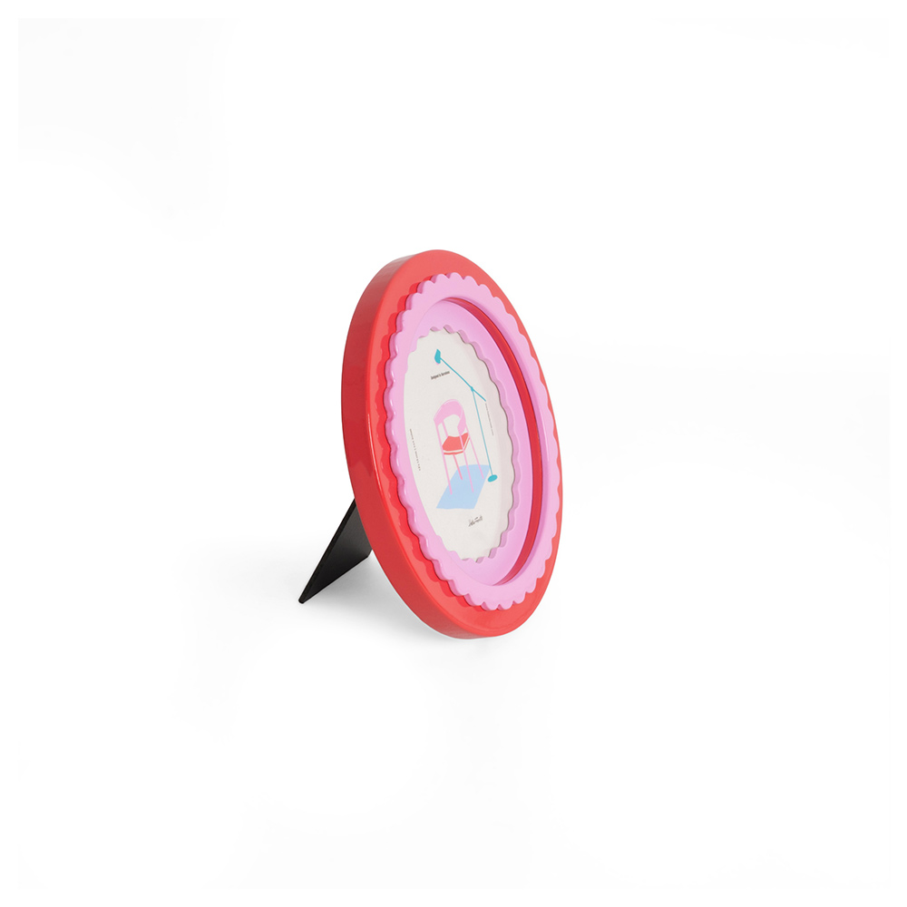 El marco redondo rojo glossy es un accesorio decorativo con un diseño moderno y juvenil. Su forma circular con borde rojo brillante y detalle en rosa pastel crea un contraste llamativo que resalta cualquier fotografía. Fabricado en MDF, combina resistencia con un estilo fresco y creativo, ideal para aportar un aire divertido y original a la decoración del hogar. Perfecto para dormitorios, escritorios o estanterías, se convierte en una pieza versátil y única.