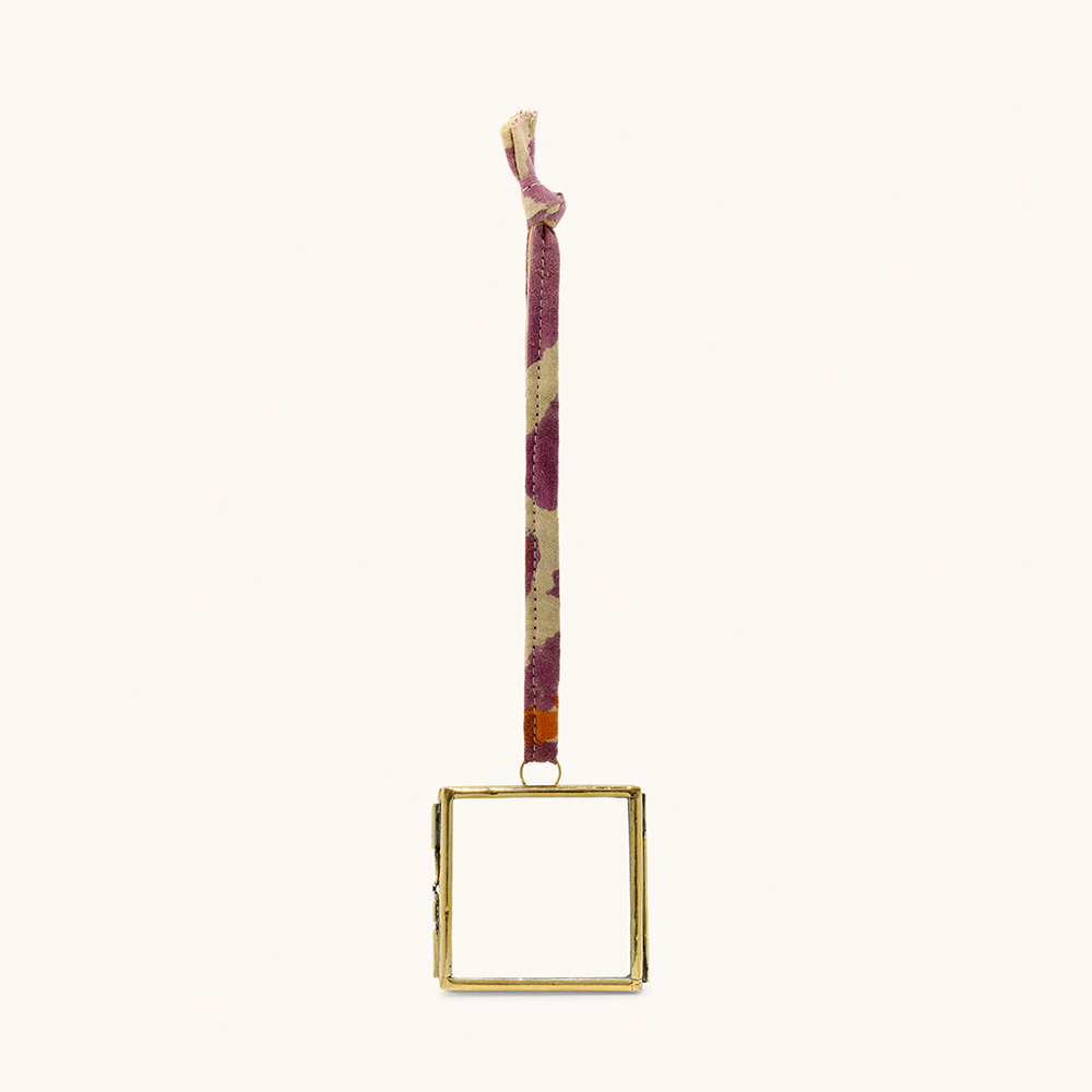 El Mini Marco Leopardo Rosa es un marco artesanal de latón reciclado y cristal con cinta textil estampada en rosa. Su tamaño compacto es ideal para fotos pequeñas o flores secas, aportando un toque alegre y único a cualquier espacio.