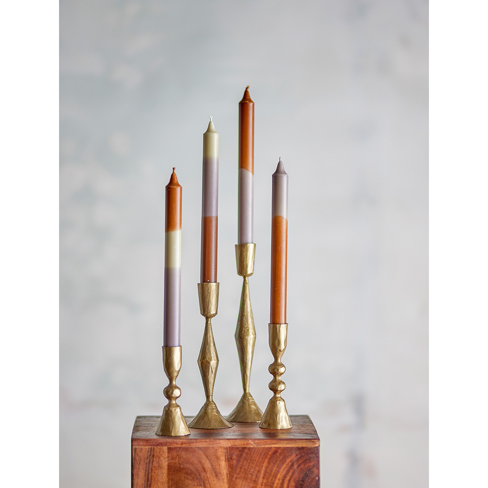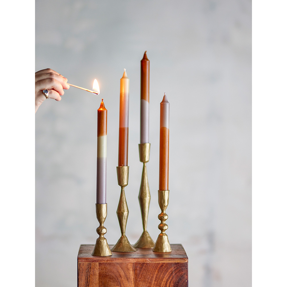 El set de velas Dip Dye es perfecto para aportar calidez y un toque artístico a cualquier rincón. Cada vela está elaborada en parafina 100% y pintada a mano en elegantes tonos morados y tierra, lo que las hace únicas. Su diseño degradado les da un aire sofisticado y moderno, ideal para combinar con diferentes portavelas.