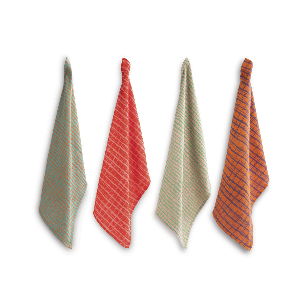 Estos paños de algodón que te visten la cocina son de la marca holandesa &Klevering. Tienen un diseño en grid en dos colores, gráfico y alegre. Vas a usarlos para todo lo imaginable.