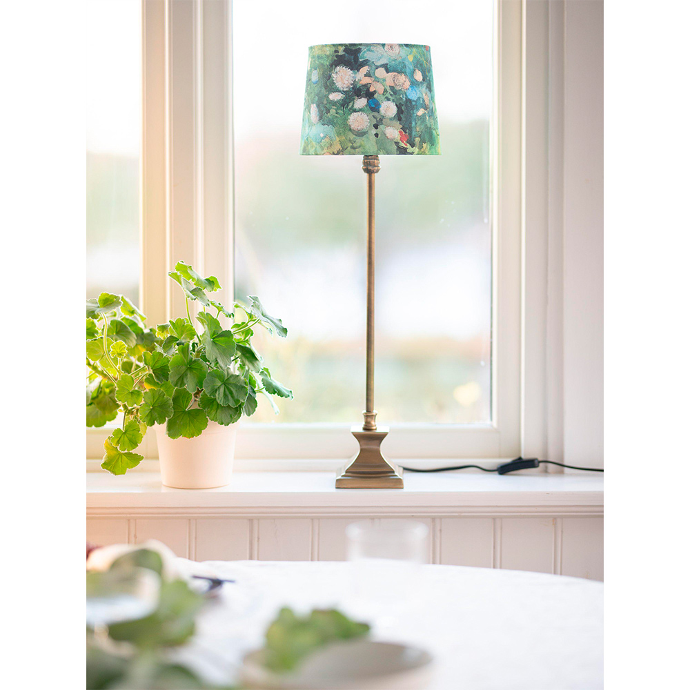 La pantalla Mochi está decorada con un estampado inspirado en la obra original “Garden Scene from Marstrand” del artista sueco Carl Larsson. El resultado es una pieza rica en detalles y color, con un toque artístico que transforma cualquier lámpara en un objeto especial. . Compatible con casquillo E27