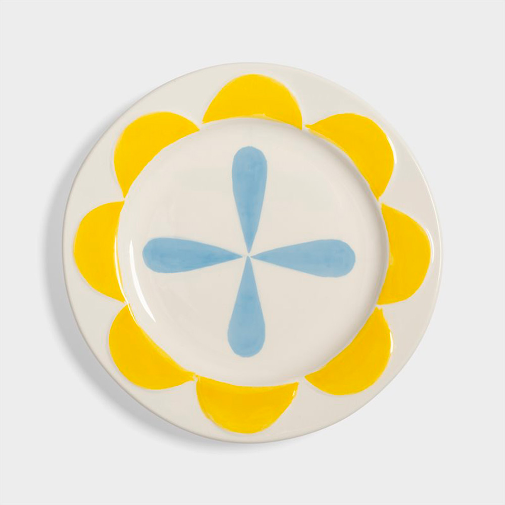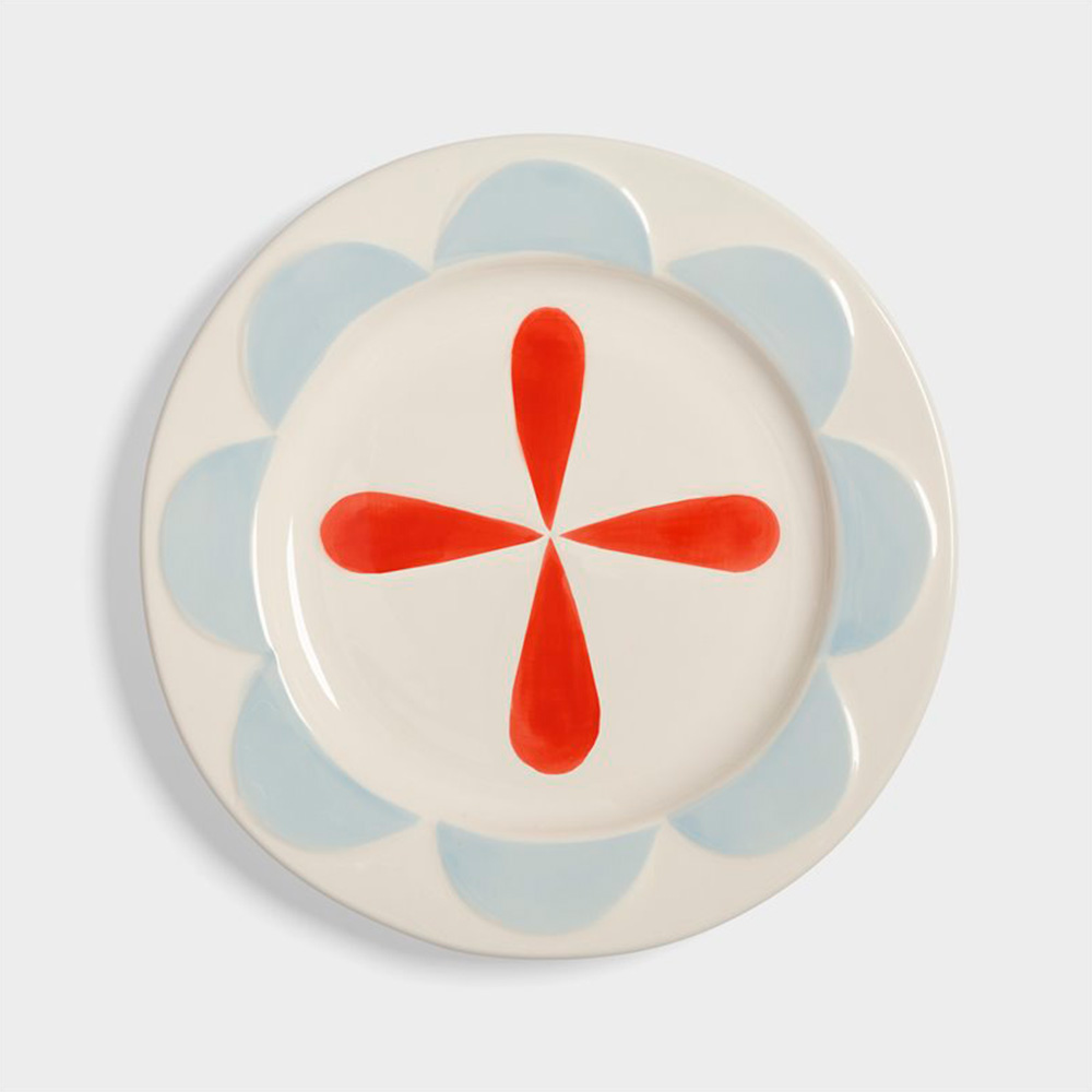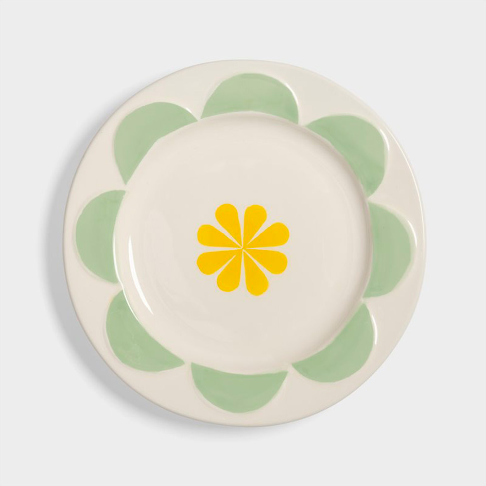 Este set de cuatro platos de postre está pensado para llenar tu mesa de alegría y color. Cada plato, fabricado en porcelana de alta calidad, presenta un borde decorado con formas abstractas que recuerdan a flores folk pintadas a mano. Son piezas resistentes y elegantes, ideales tanto para el día a día como para celebraciones especiales