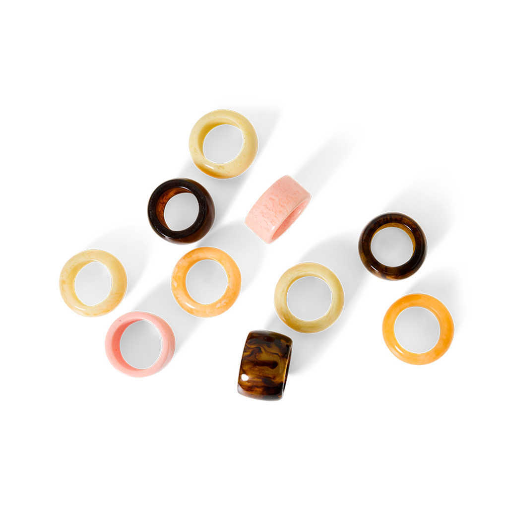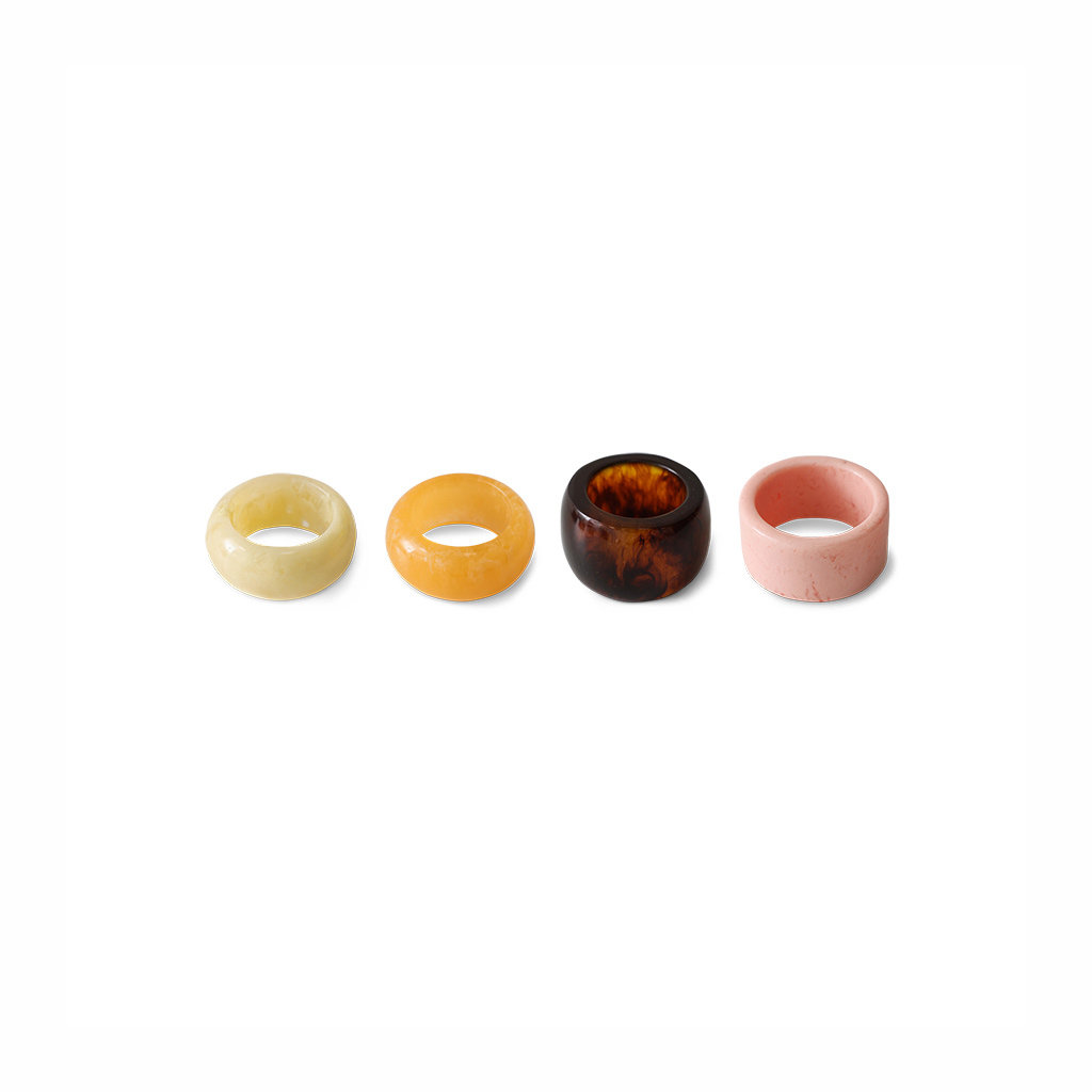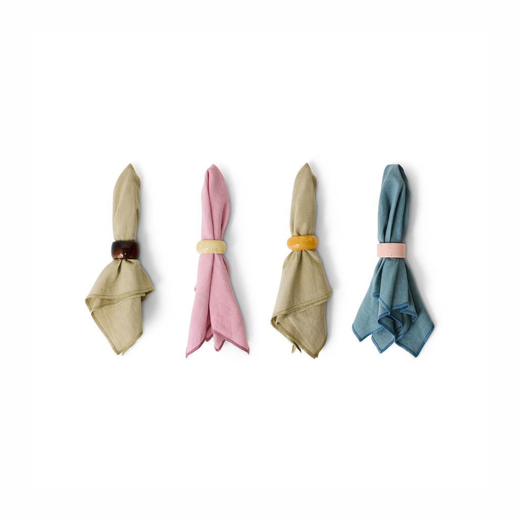 El set de servilleteros Sunrise convierte una mesa cotidiana en una composición con intención. Este conjunto de cuatro piezas juega con formas redondeadas y colores cálidos inspirados en los tonos del amanecer: crema, miel, rosa y ámbar profundo.