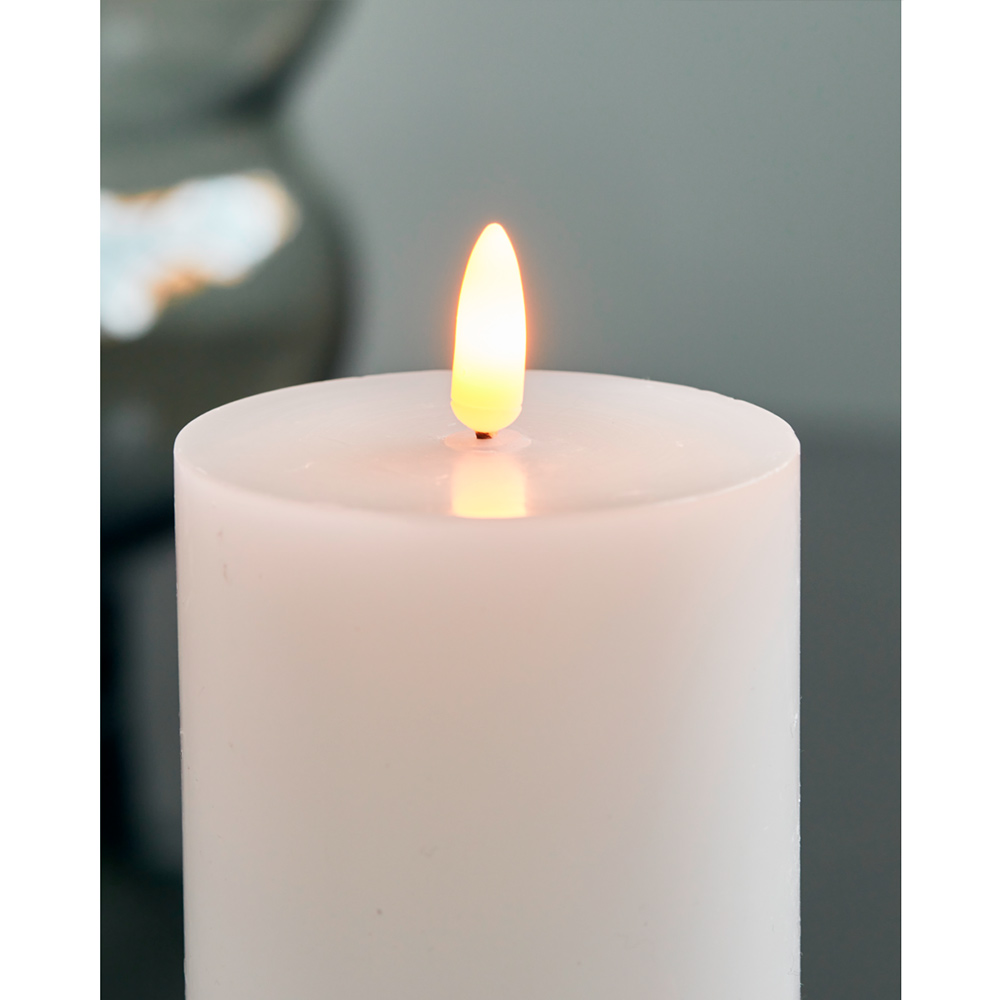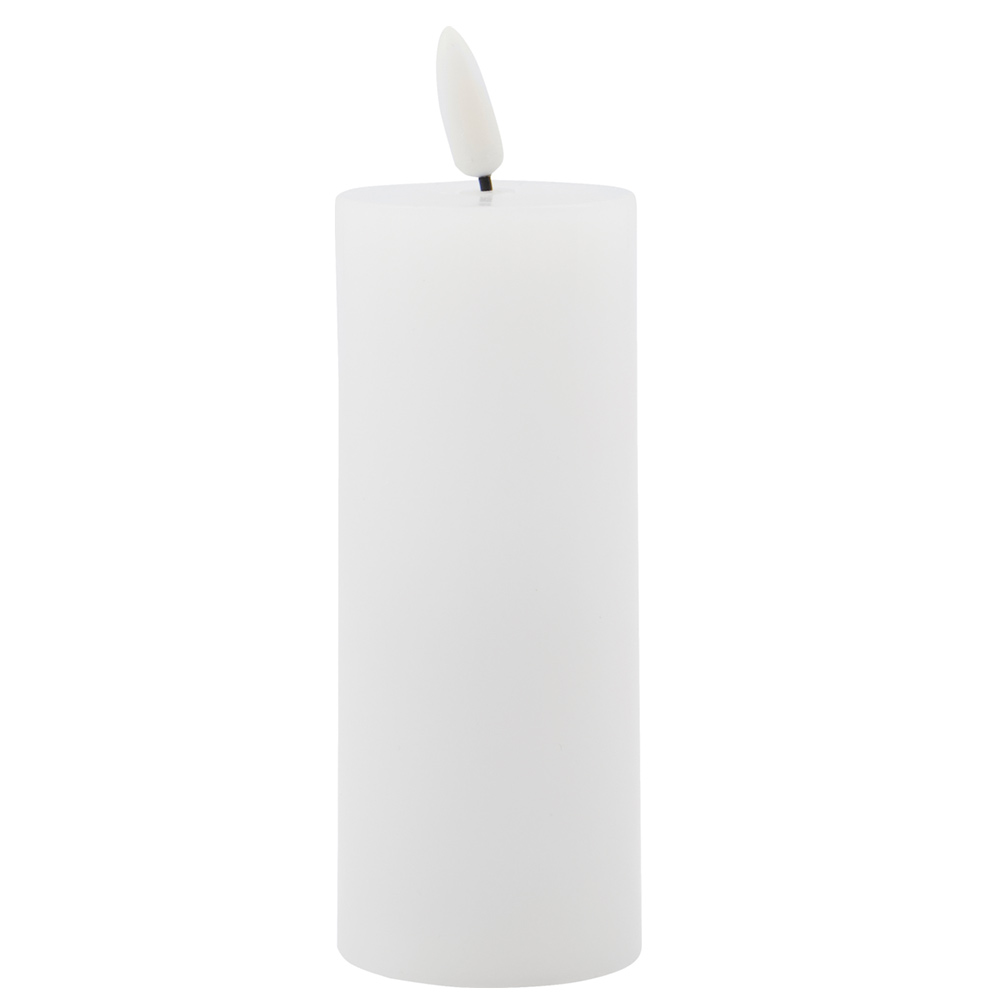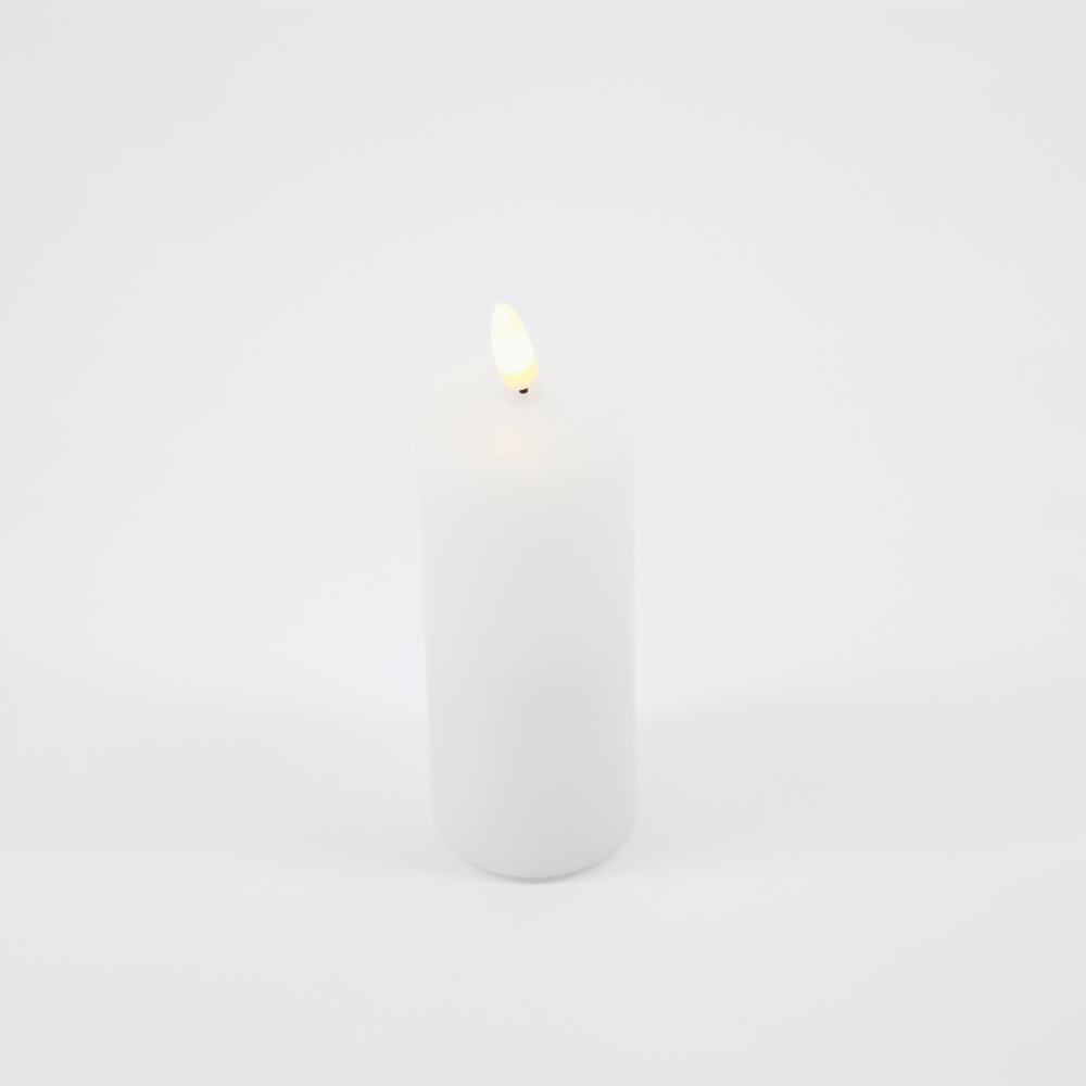 Vela LED blanca mediana de House Doctor con efecto parpadeante realista y superficie de parafina. Incluye función de temporizador de 5 horas. Ideal para crear ambientes cálidos y seguros en el hogar.
